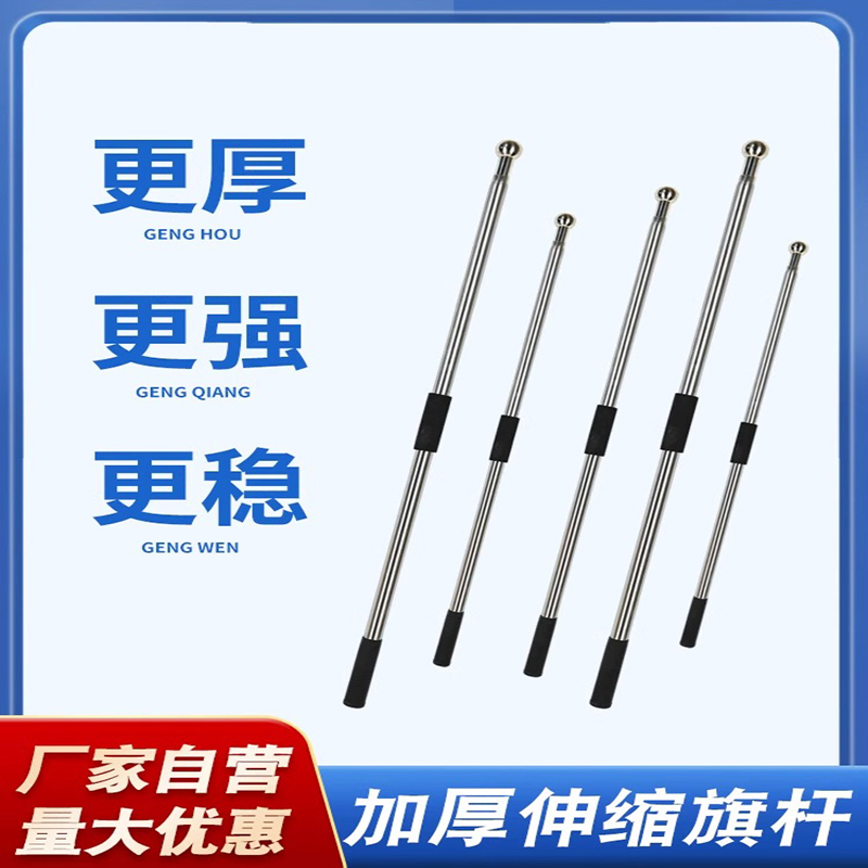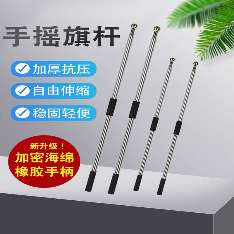 旗桿伸縮3米不銹鋼2米戶外不銹鋼加厚批發運動會團建領隊學校班旗豪華型手搖導游旗桿手持收縮定制4米由