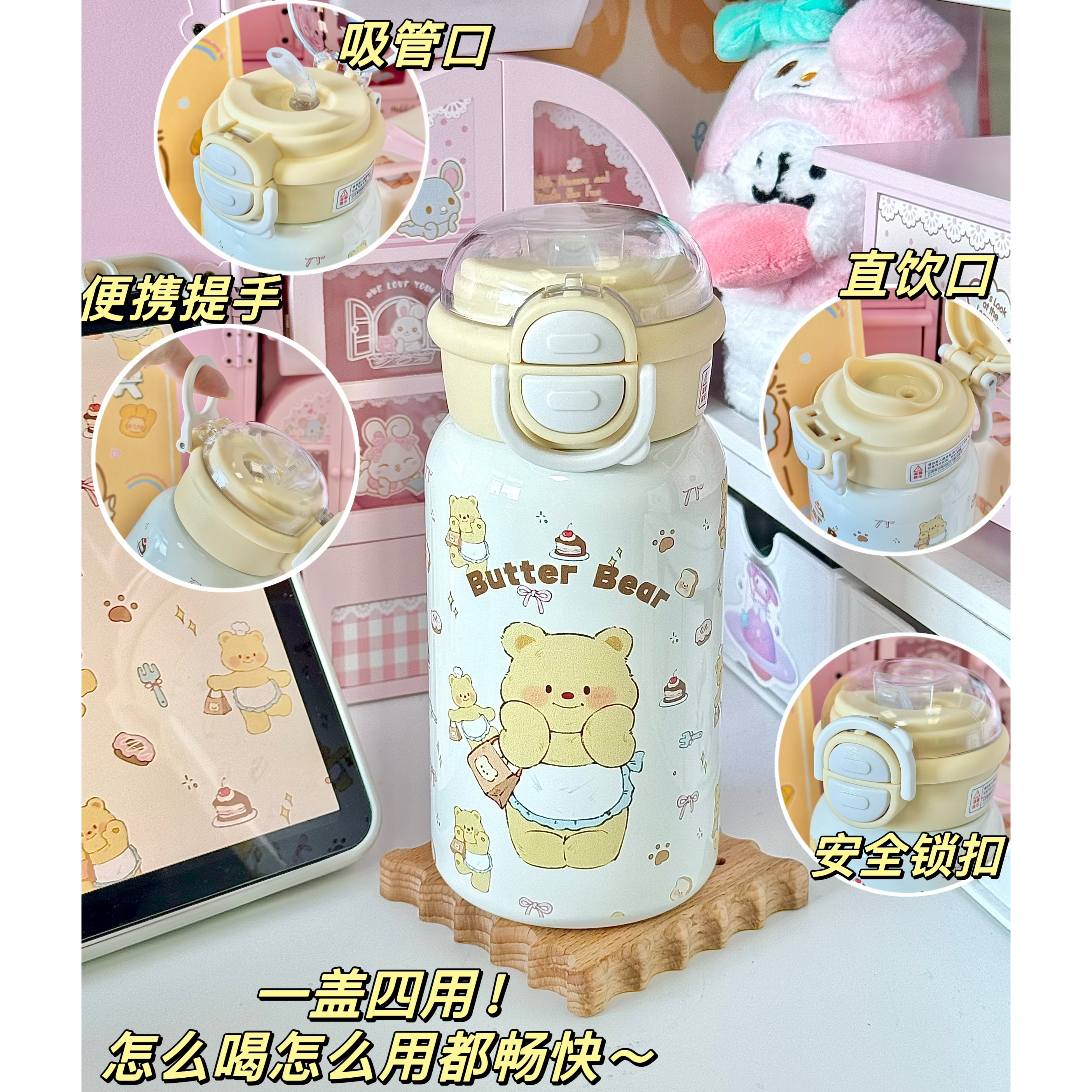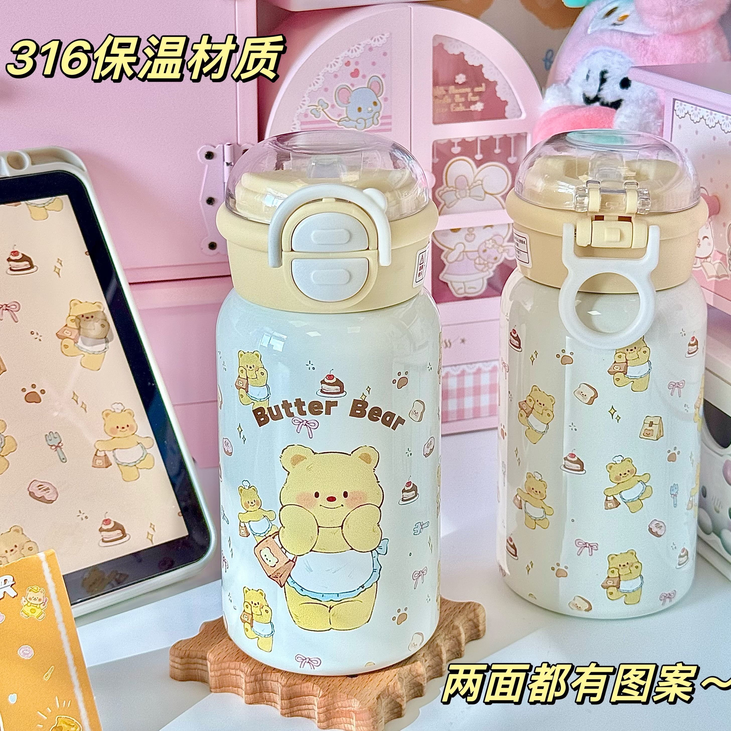 黃油小熊316大容量保溫杯可愛萌卡通實用送女生男生 生日禮物套裝由