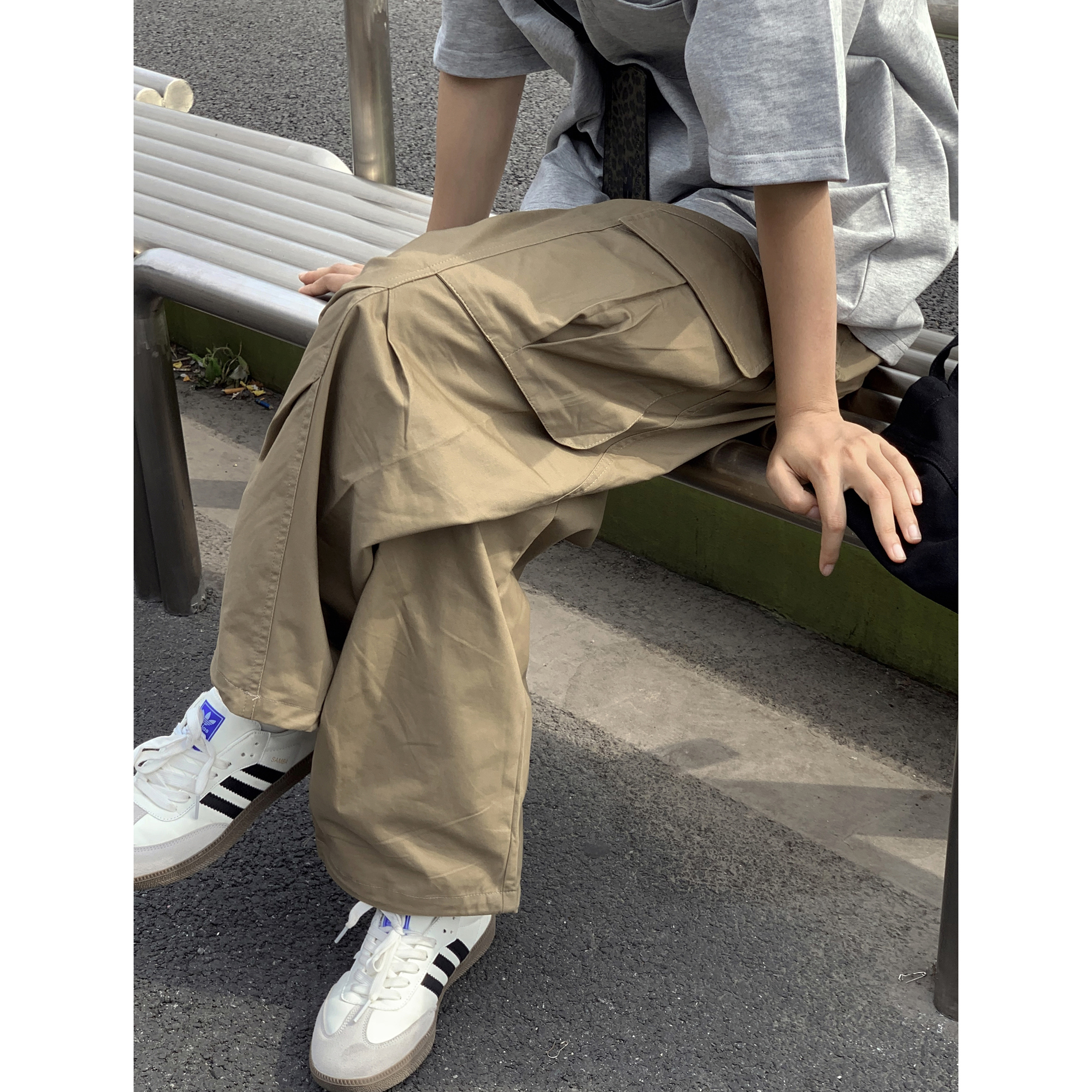 日系休閑長褲 卡其色工裝 子 復古高街寬松伐木傘兵褲 美式 褲 2025夏季由