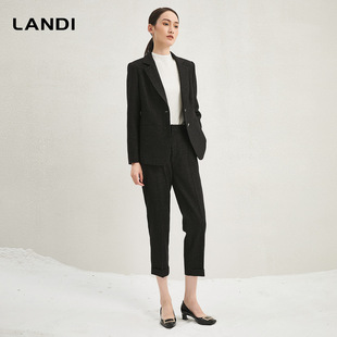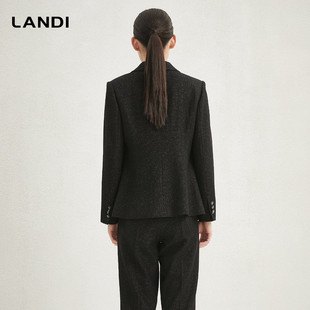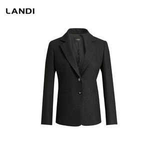 LANDI黑色花紗綿羊毛修身 西服外套女通勤西裝 冬新品 商場同款由