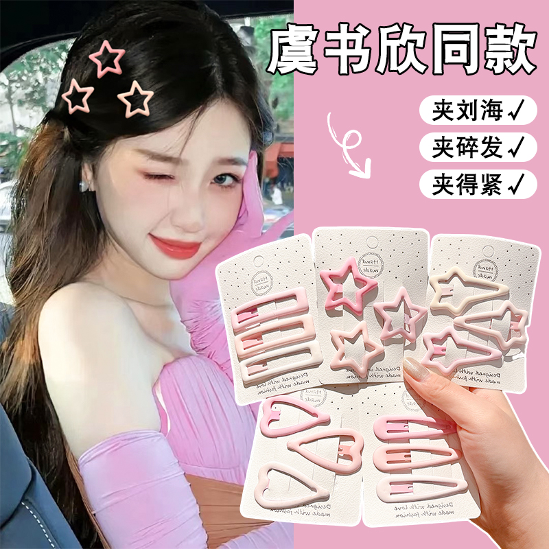 多巴胺粉色星星小發夾女后腦勺碎發整理發卡前額劉海愛心bb夾頭飾由