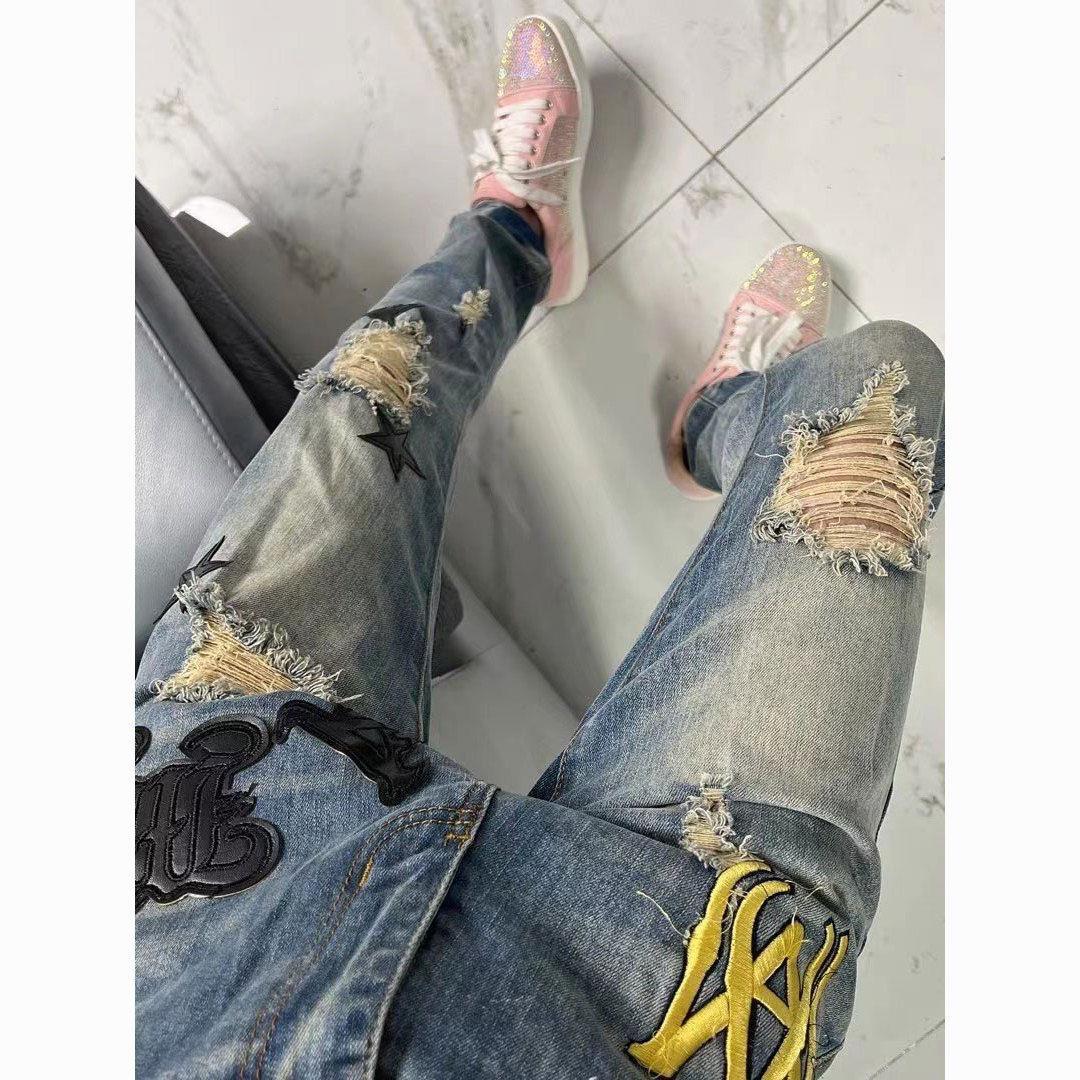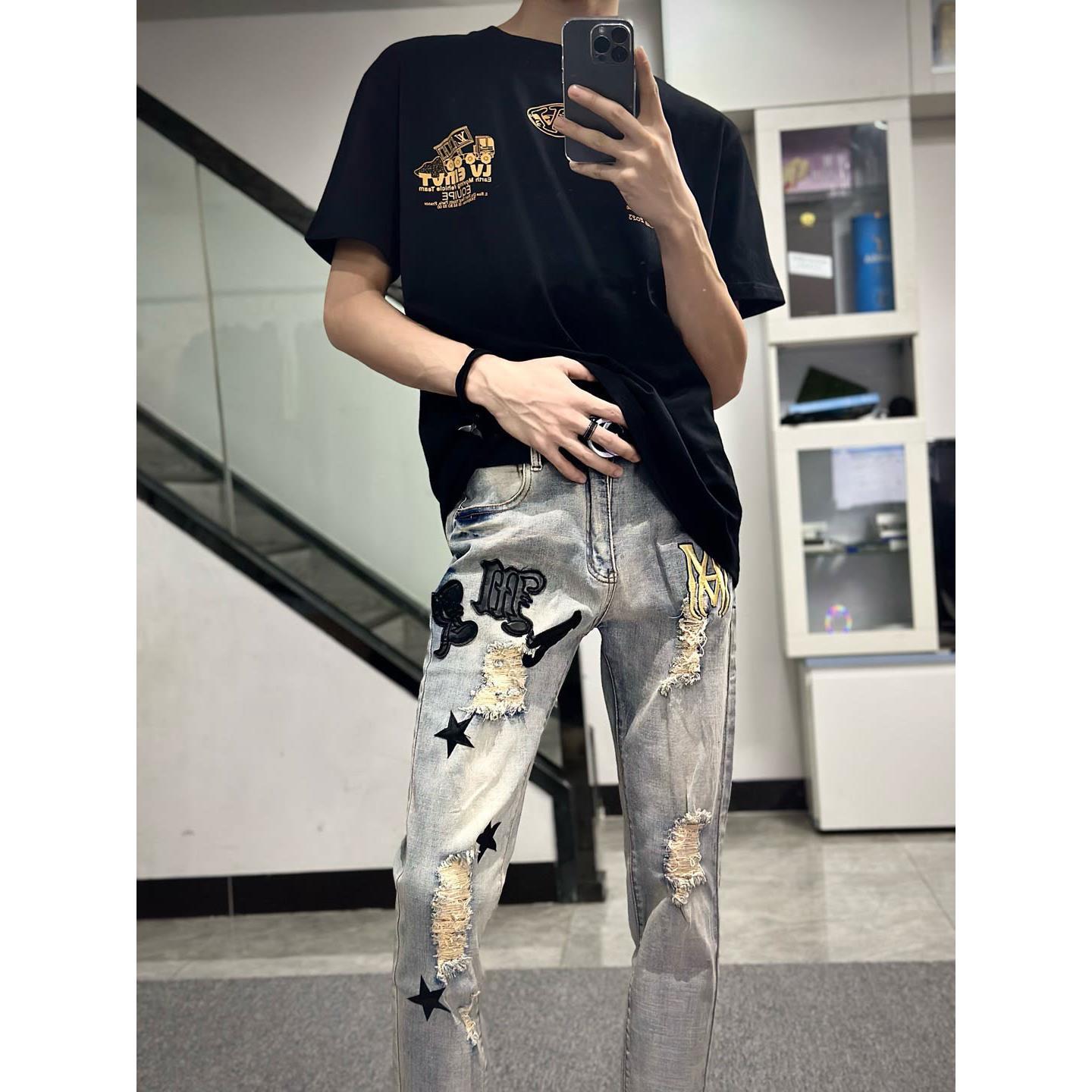 男中大童潮牌精神小伙小腳褲 2025新款 破洞童裝 拉鏈牛仔褲 網紅同款由