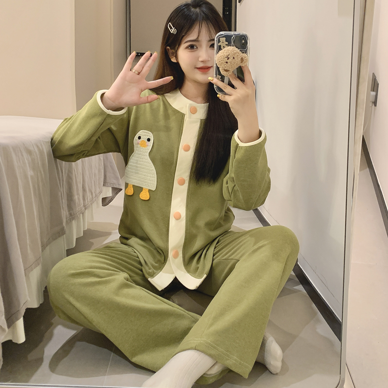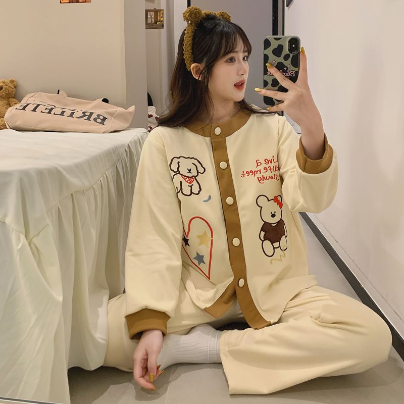 純棉帶胸墊睡衣女秋季 家居服套裝 秋天女士可外穿秋冬2025新款 長袖