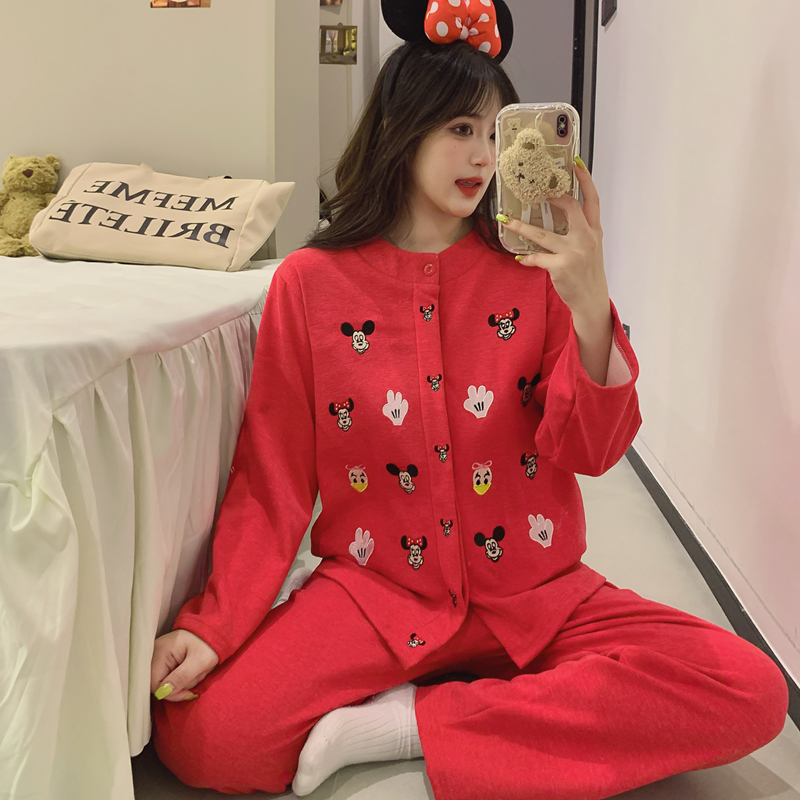 套裝 貓人純棉睡衣女春秋2025新款 冬款 長袖 可外穿家居服 寬松加大碼