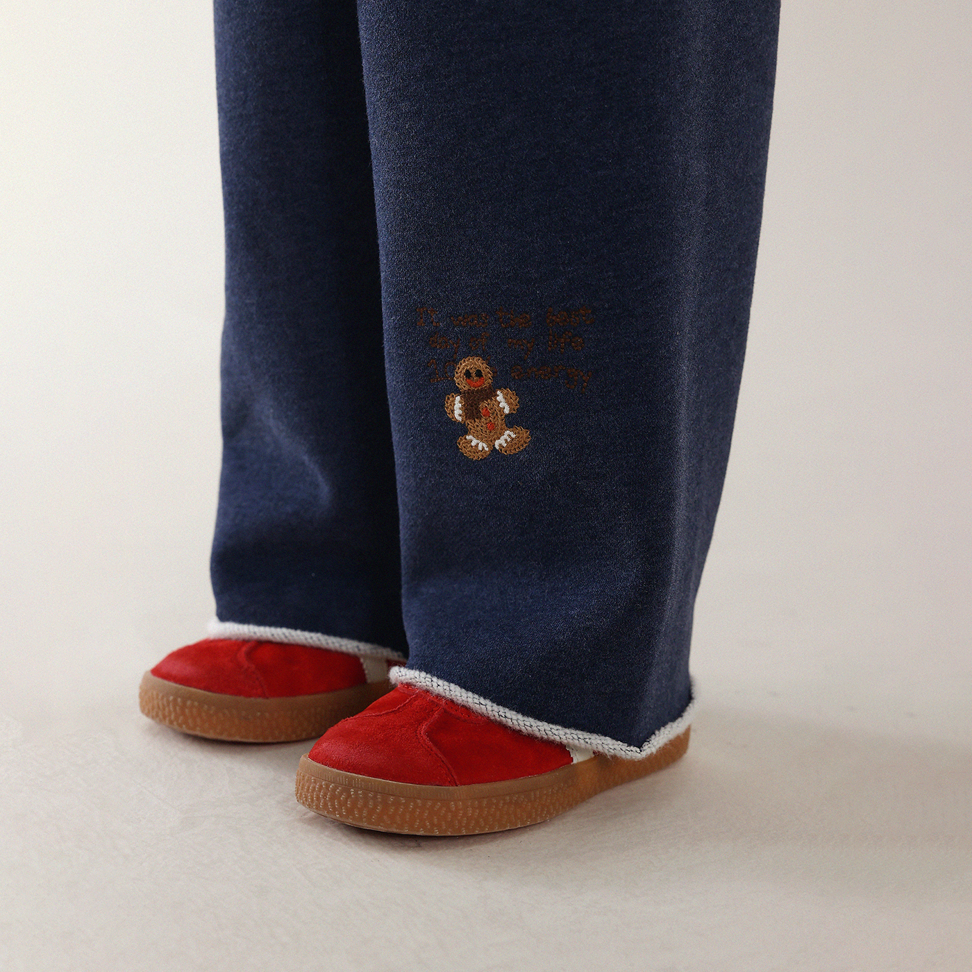 兒童時尚 寶寶冬季 卡通刺繡加絨休閑運動褲 允兒媽女童純棉衛褲 子 褲由