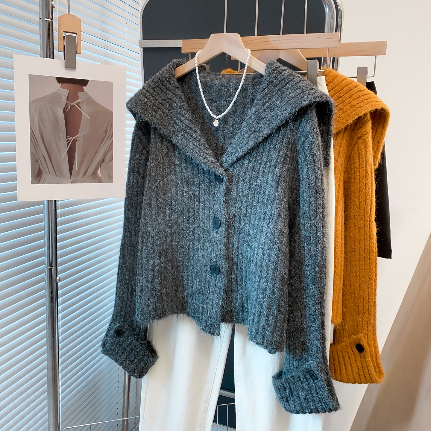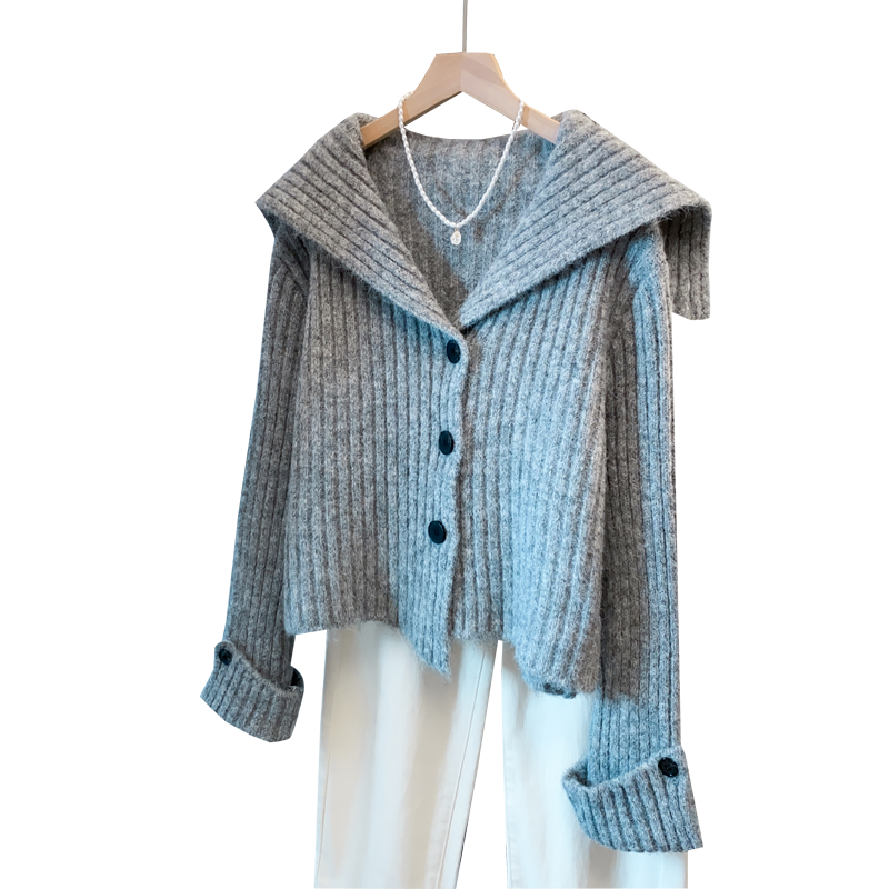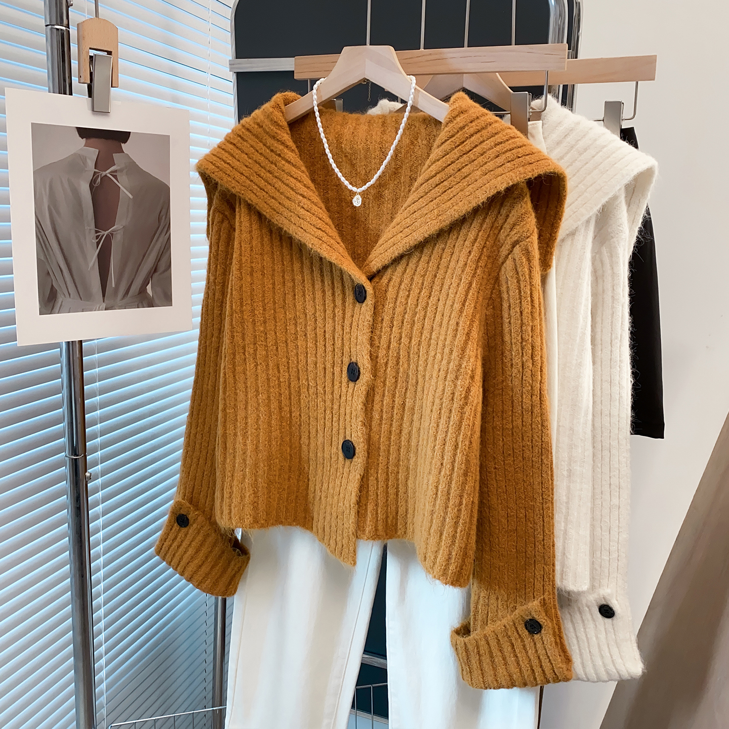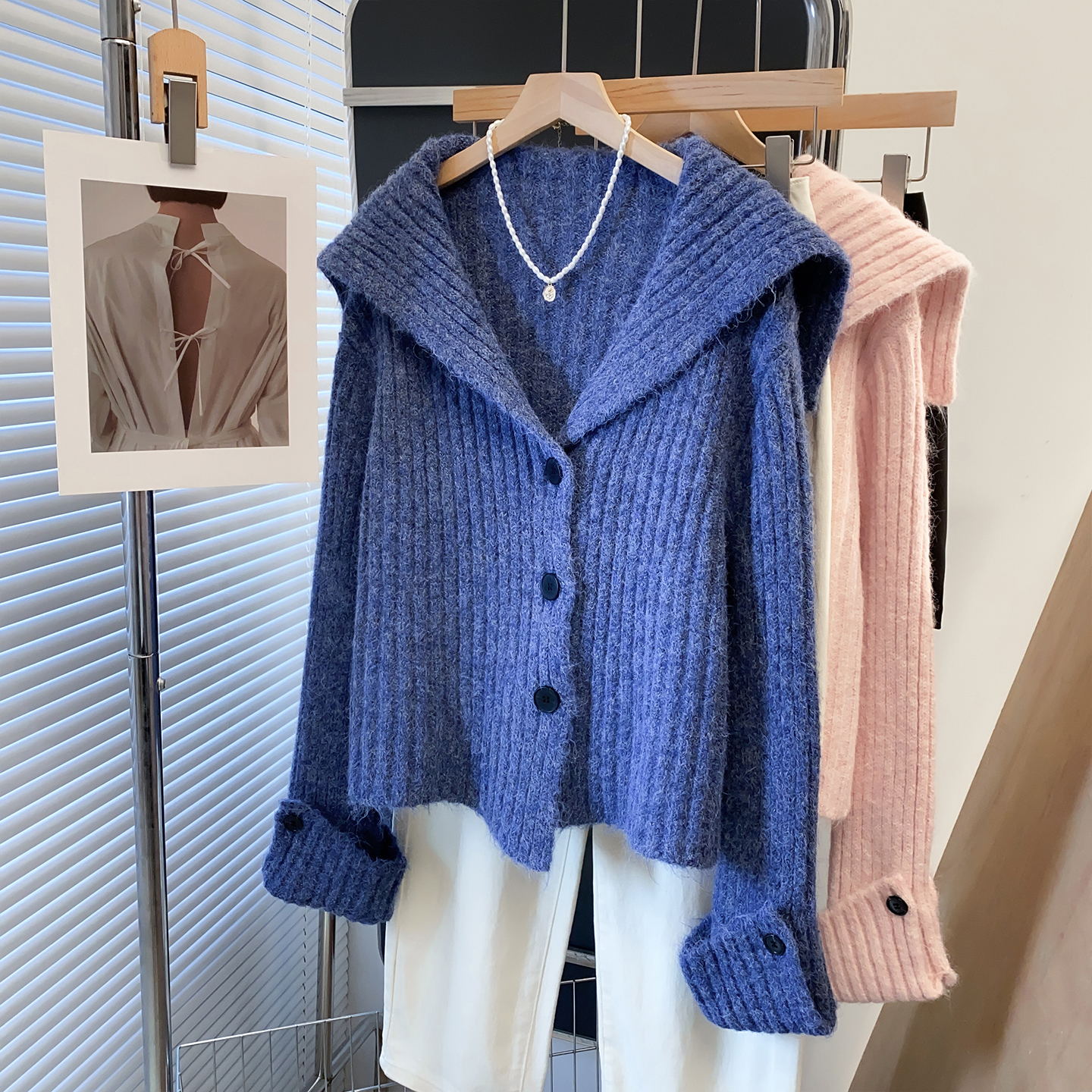 海軍領毛衣外套女2025秋冬新款 潮 寬松慵懶風外穿上衣加厚針織開衫由