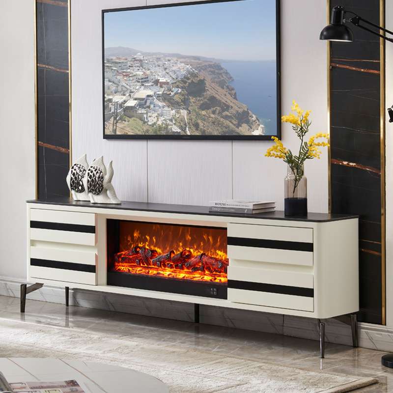 家用室內客廳實木仿真火電壁爐取暖 極簡白色壁爐電視壁爐取暖由