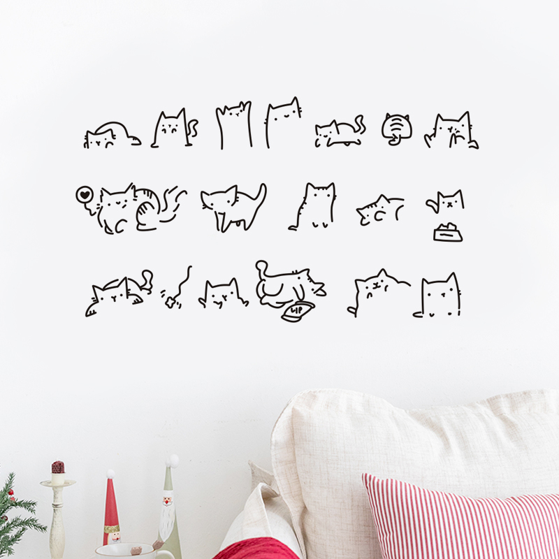 飾墻上貼紙 貓咪兒童可愛圖案創(chuàng)意寵物店貓咖沙發(fā)櫥柜臥室背景裝由