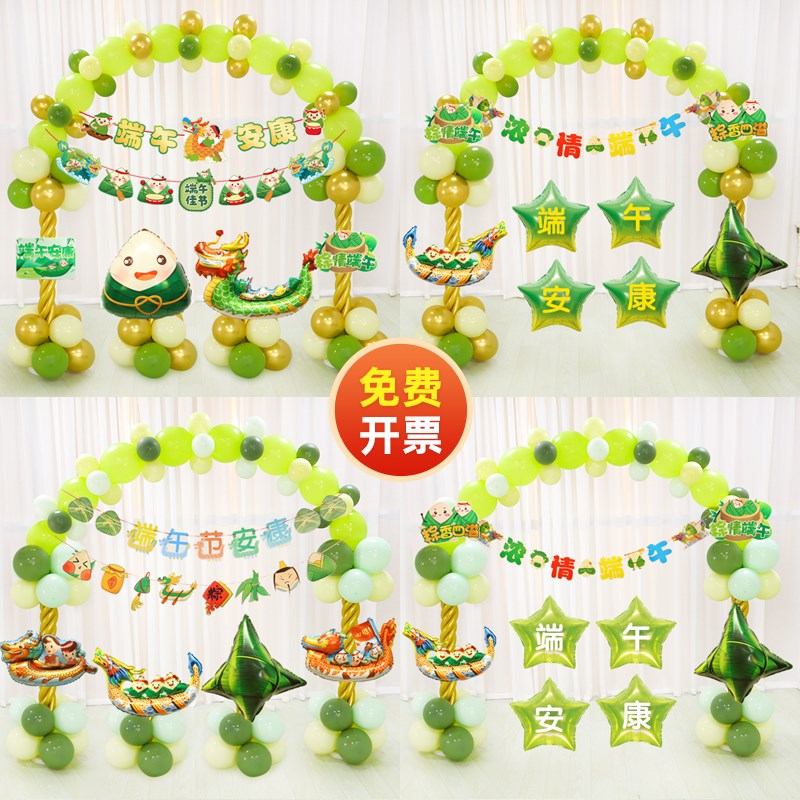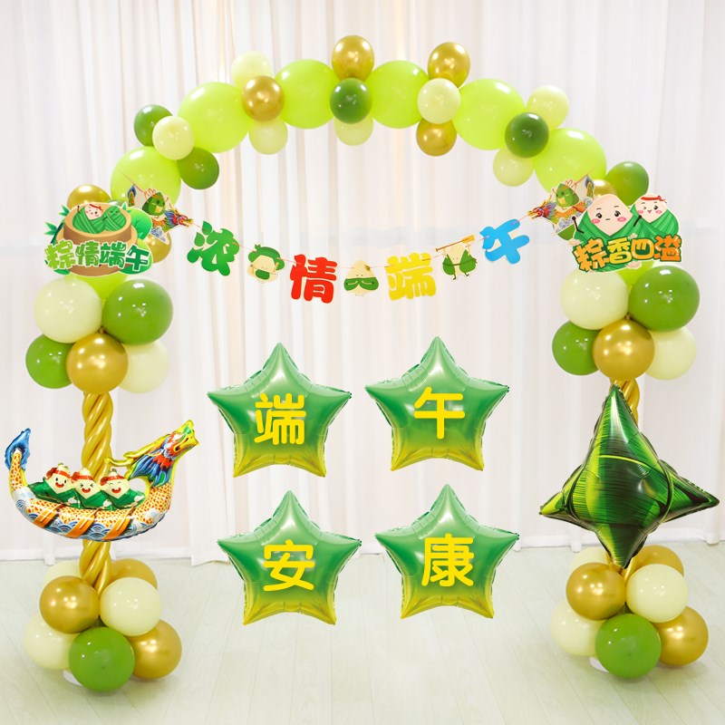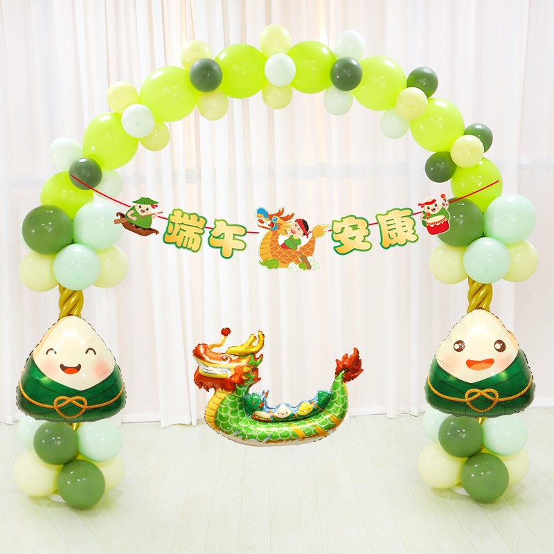 飾綠色氣球小拱門立柱幼兒園店鋪公司活動氛圍場景布置品 端午節裝由