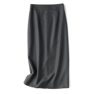 開叉一步半身裙優雅女 干練通勤高支精紡羊絨高腰直筒裙高級感長款由