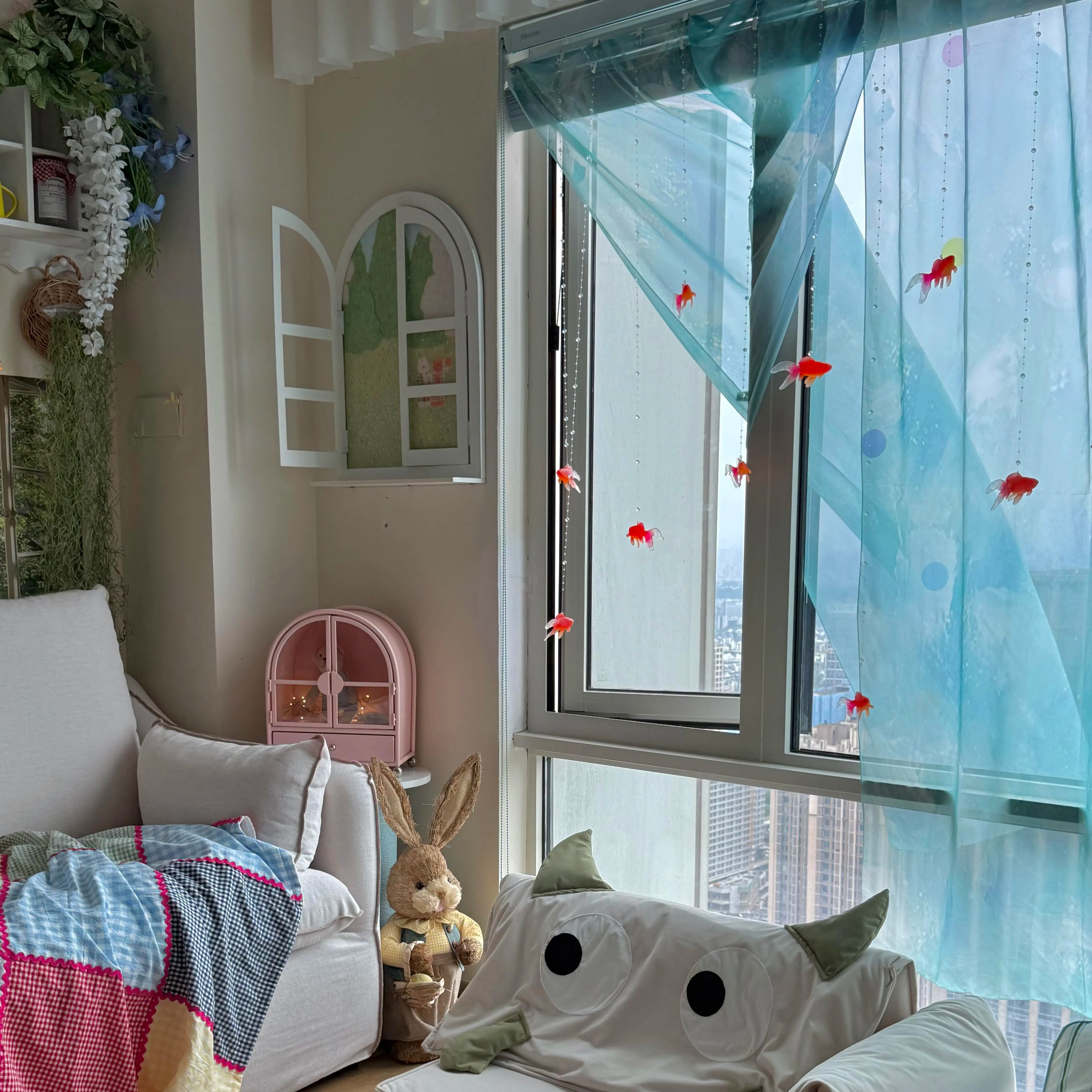 臥室飄窗門簾房間裝 飾少女心夢幻 金魚窗簾免打孔安裝 悅己美學家由