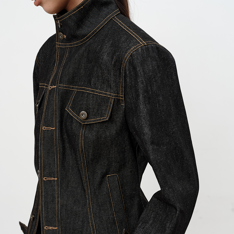 JCAESAR 斜門襟收腰原牛夾克 12oz丹寧 挺闊有型牛仔外套秋 WOMEN由