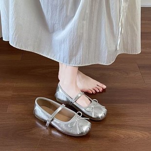 芭蕾平底一字帶瑪麗珍小皮鞋 2025秋季 新款 仙女風蝴蝶結(jié)單鞋 子女鞋由