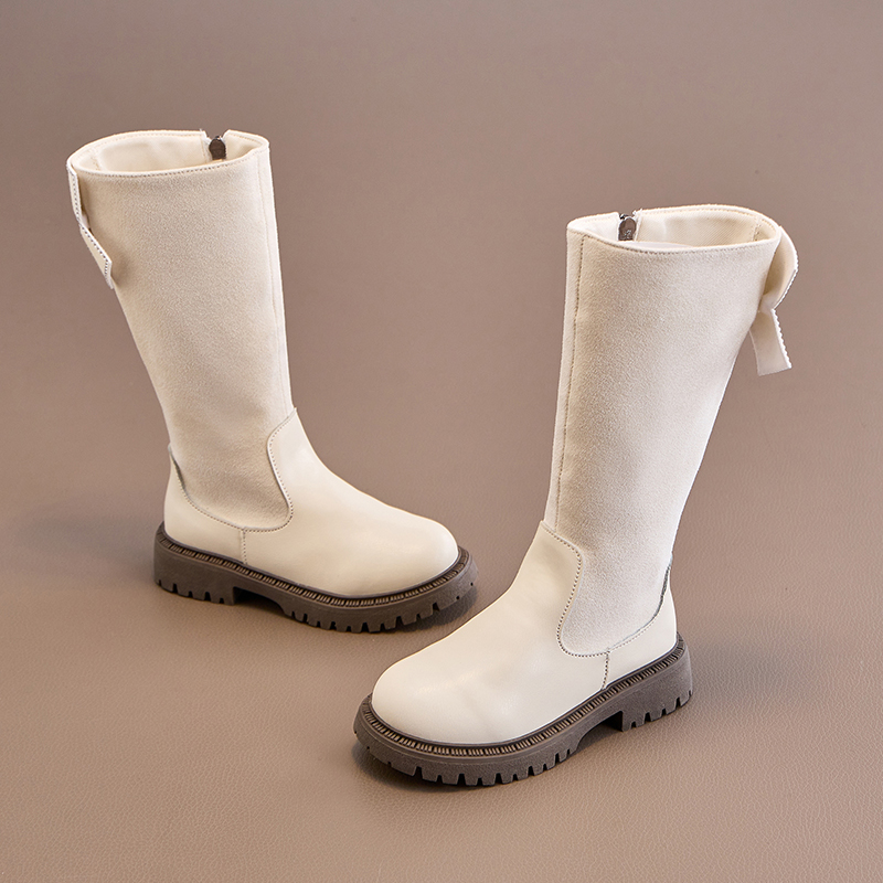 女童長(zhǎng)靴2025秋季 小香風(fēng)白色兒童騎士高筒靴小女孩單靴馬丁靴 新款由