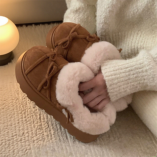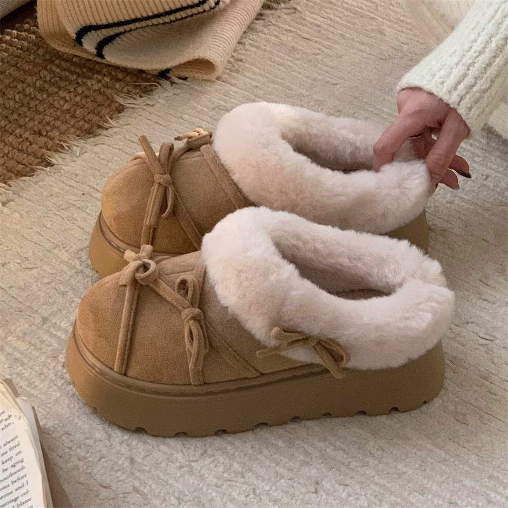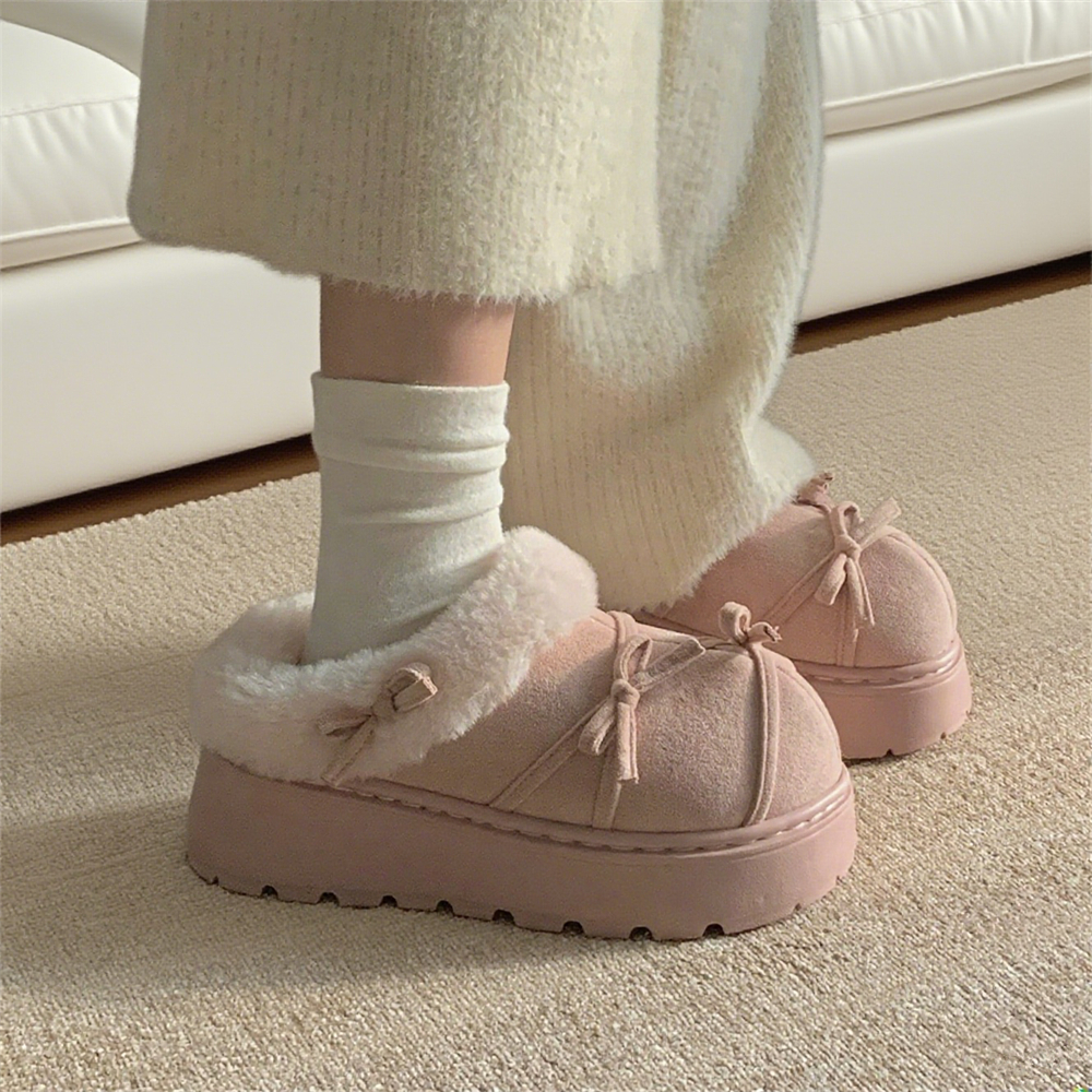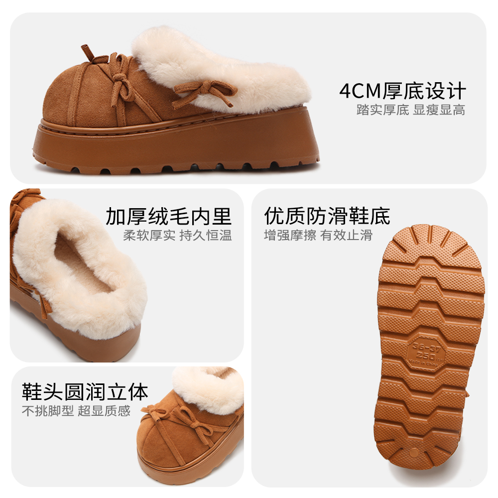 ins風一腳蹬冬韓系蝴蝶結樂福棉拖鞋 厚底防滑保暖女士加絨毛毛鞋由