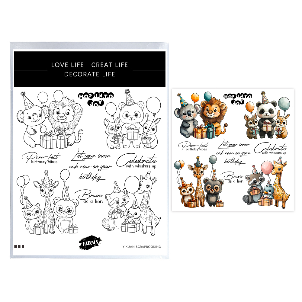 動物party透明硅膠印章跨境手帳透明印章stamp素材圖章 新款由