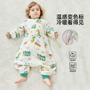 貝肽斯 嬰兒睡袋分腿秋冬款 寶寶純棉兒童恒溫防踢被四季 通用 肽柔