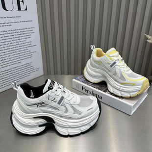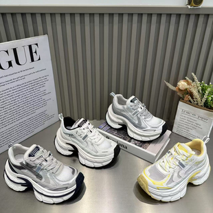巴家爆款 女2025年新款 厚底松糕小個子做舊擦色拼色運動鞋 潮 老爹鞋由