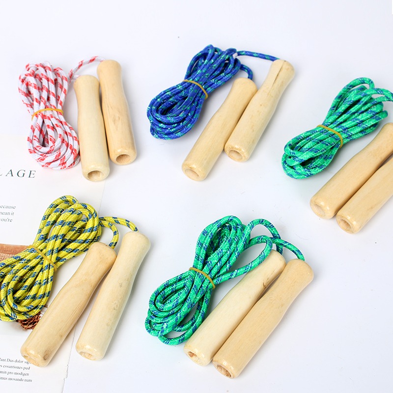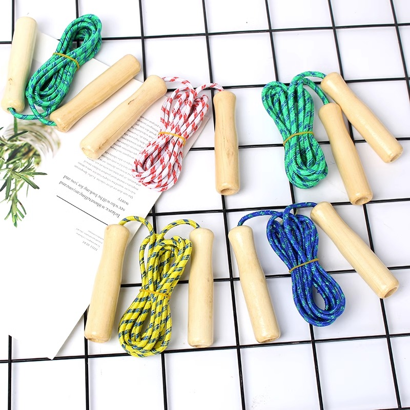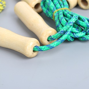兒童跳繩健身用具戶外運(yùn)動(dòng)木制手柄棉繩體育課比賽用具可調(diào)節(jié)跳繩由