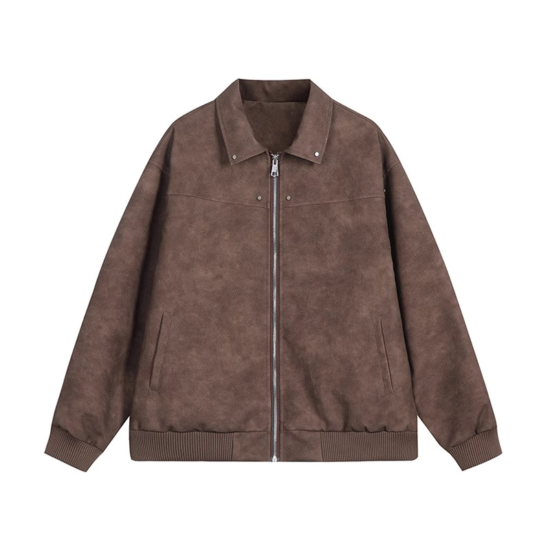 RASP美式 國潮牌高級感cleanfit做舊皮衣外套 復古鉚釘夾克秋冬新款由