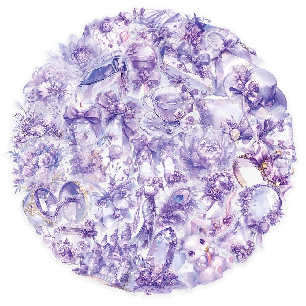 紫色夢境PET貼紙ins風高顏值紫色系卡通少女香水包包飾品DIY貼畫由