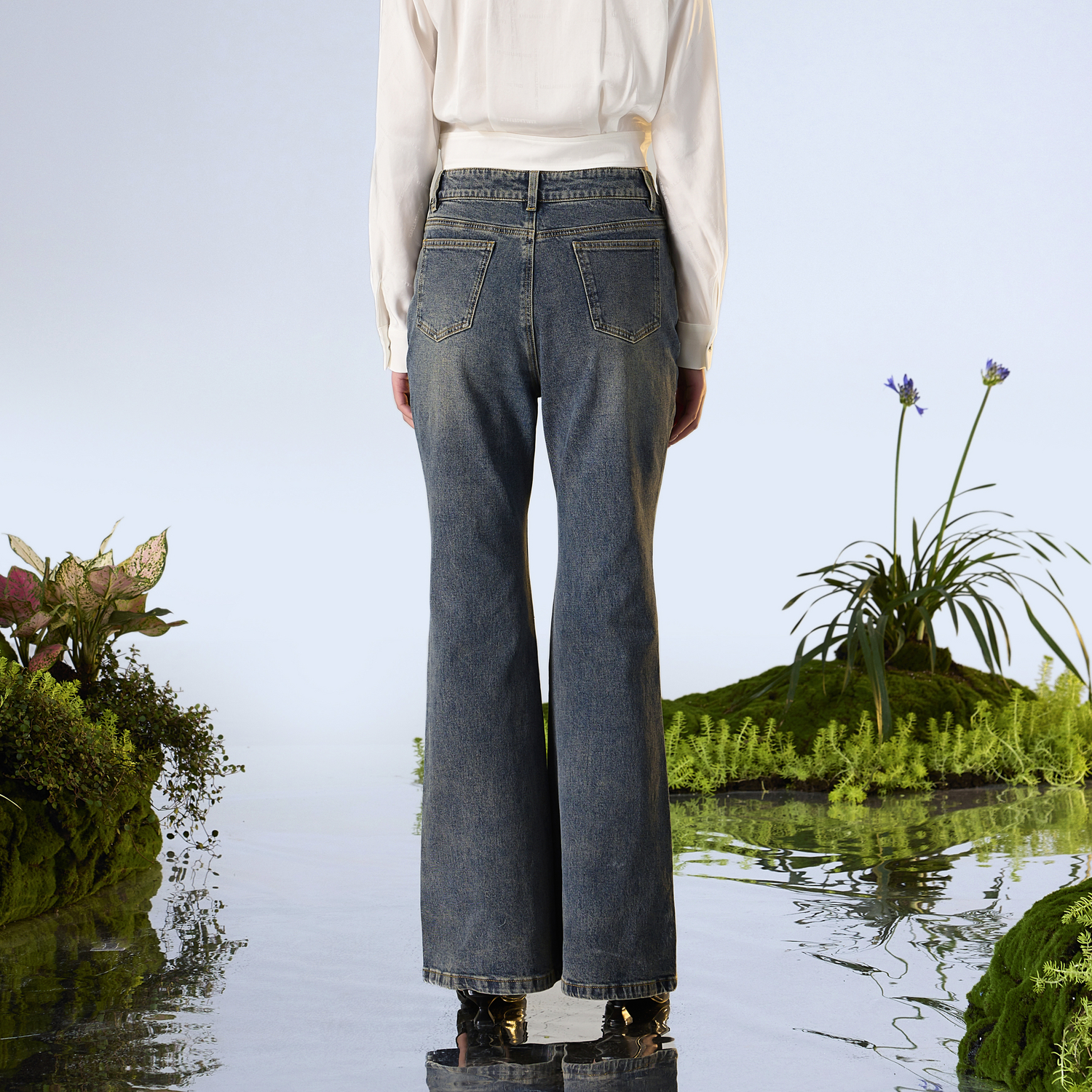 修身 依妙EMU高腰燙鉆喇叭牛仔褲 女2025秋季 新款 顯瘦百搭長褲由