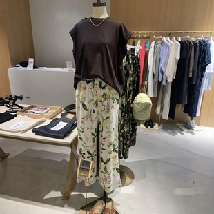 萊賽爾 進店苾敗 MO家 進口環保料 亞麻度假風植物印染寬松直筒褲由