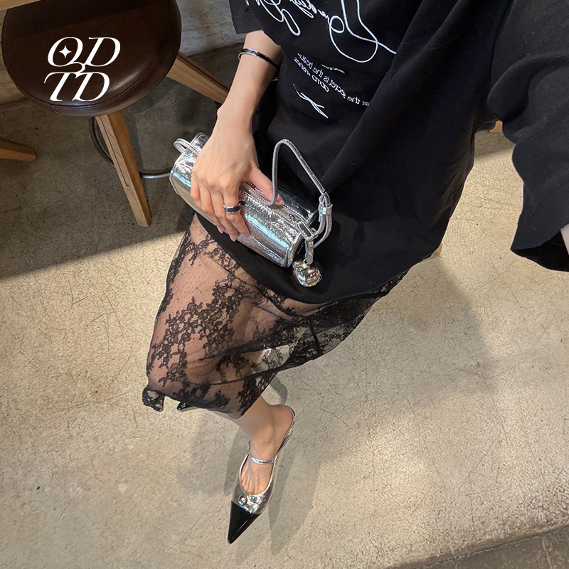 方頭絕美不累腳拖高跟鞋 黑色水鉆一字帶涼鞋 2025夏季 新款 其他拖鞋