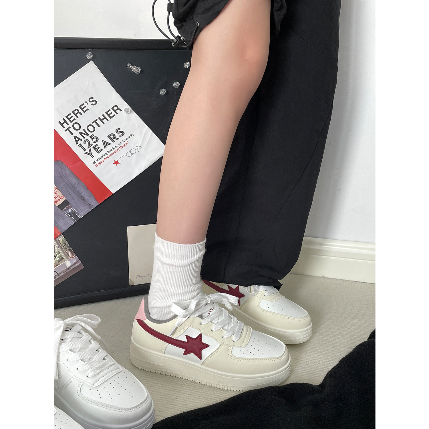透氣百搭復(fù)古厚底休閑運(yùn)動鞋 星星小白鞋 2025新款 夏季 學(xué)生潮流板鞋由