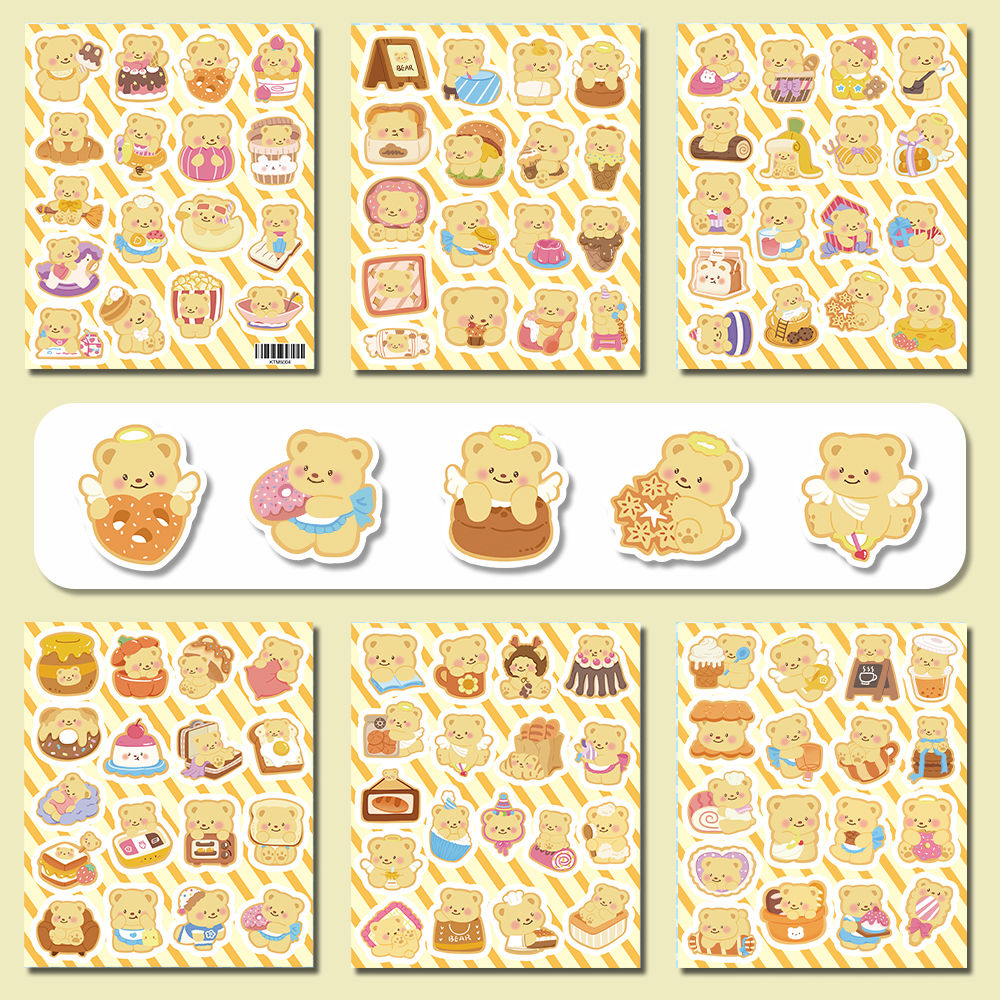 飾水杯手賬素材卡通小熊防水貼紙 100貼黃油小熊貼紙卡通可愛diy裝由