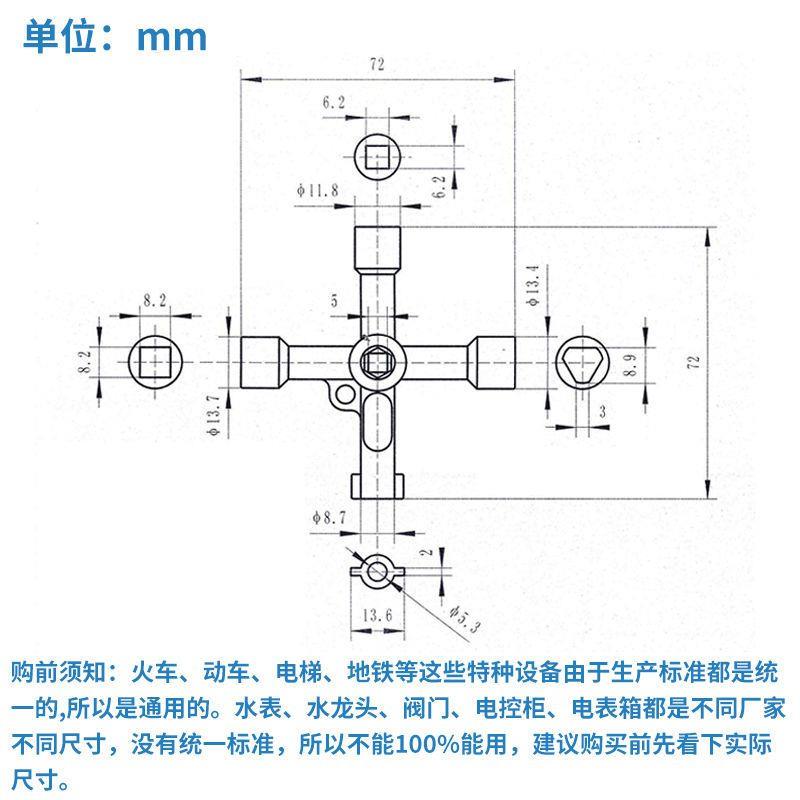 通用內(nèi)三角電梯配件電氣柜電表地鐵火車門套筒扳五合一三角鑰匙由