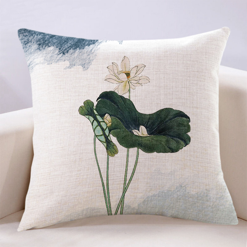 靠墊茶室座椅靠背 抱枕中國風(fēng)荷塘月色客廳沙發(fā)靠枕套荷花禪意中式由
