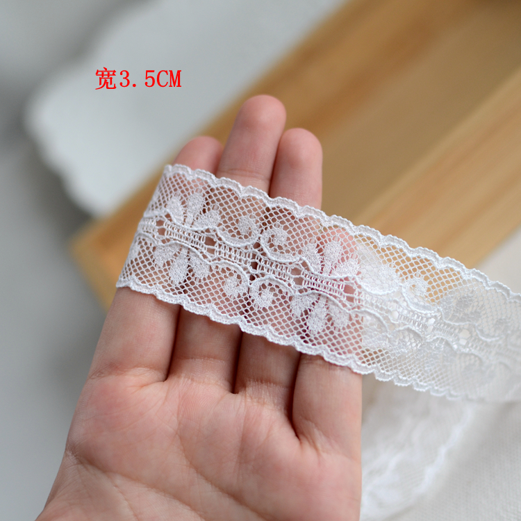 可穿絲帶lolita手工材料 寬3cm雙邊白金線水溶刺繡蕾絲花邊輔料