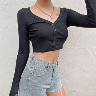 neck slit 女 口開叉V領(lǐng)性感露臍修身 針織衫 sweater上衣袖 Cuff由