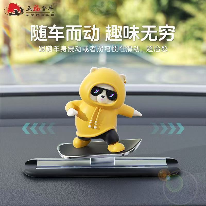 飾品汽車屏幕創意動動裝 飾 中控臺小熊裝 滑動車載滑板擺件卡通新款由