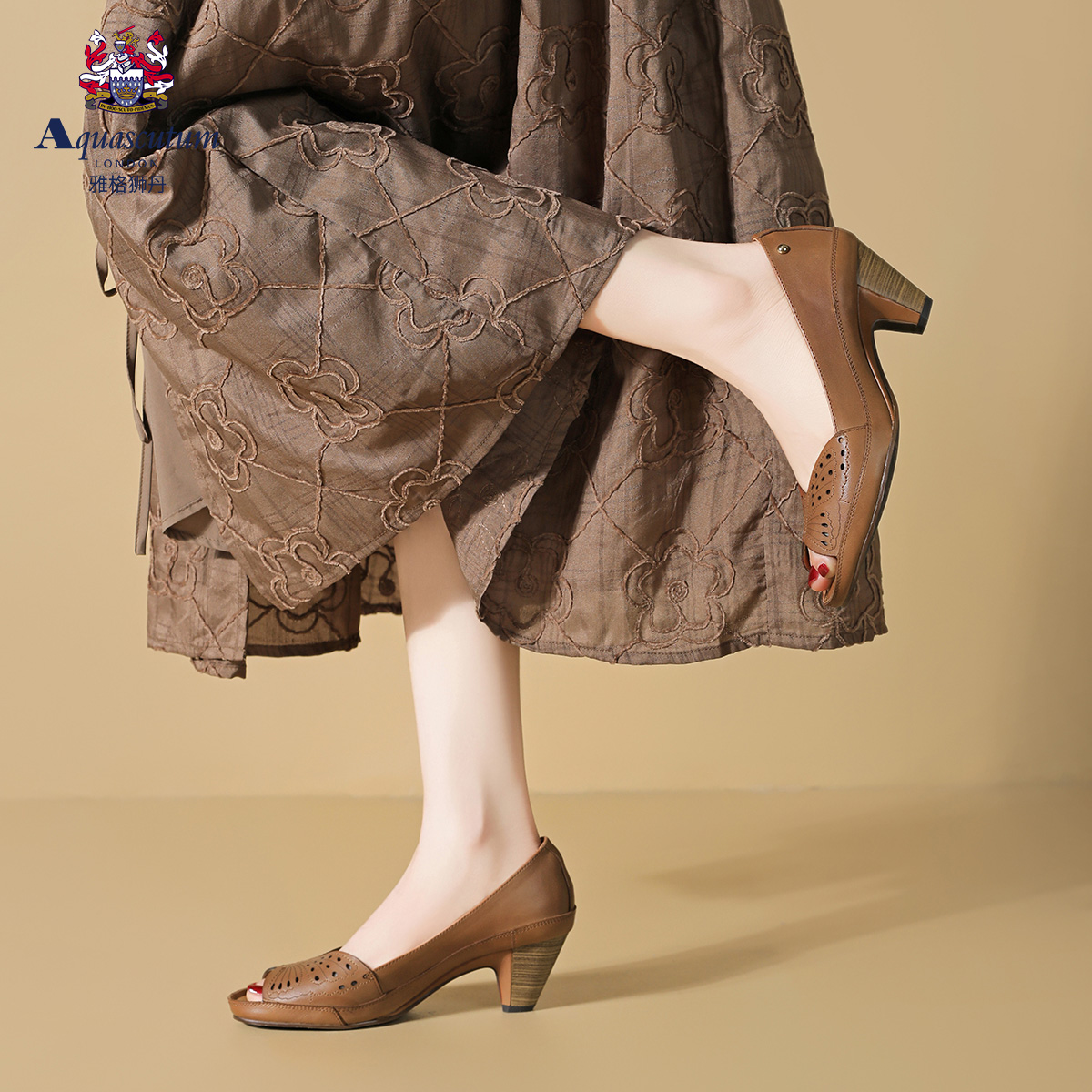 魚嘴粗跟鞋 Aquascutum Junior里外全皮時尚 時裝 百搭透氣舒適涼鞋由