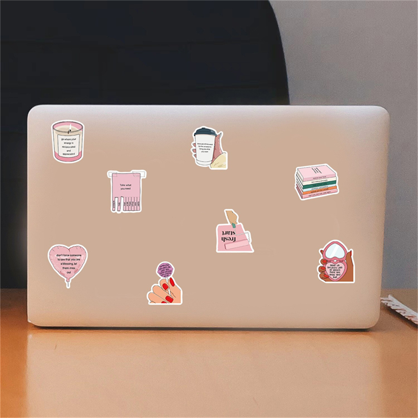 飾行李箱水杯電腦防水貼畫可愛風桌面pvc不干膠魚箱貼 50張粉色英文勵志短語拒絕內耗標簽貼紙ins風創意裝由