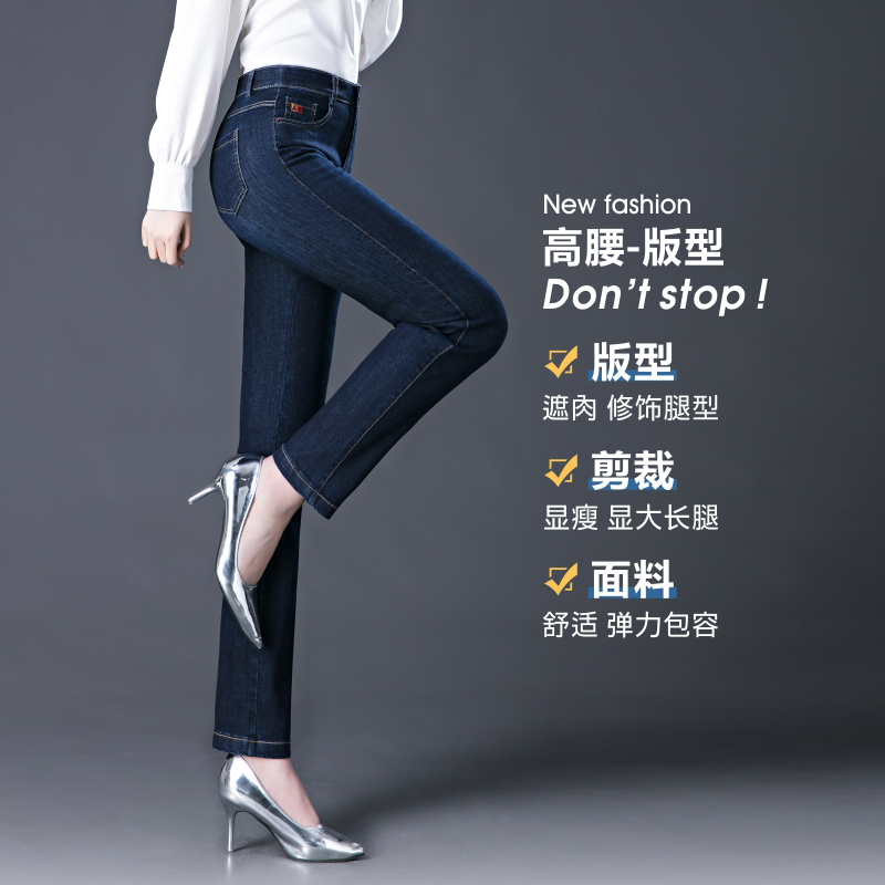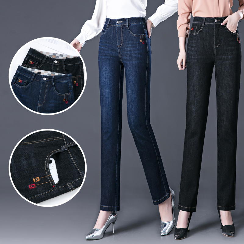 女冬季 直筒牛仔褲 女春秋2025新款 中年媽媽褲 加絨彈力高腰中老年褲由