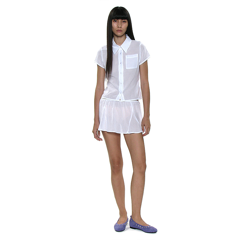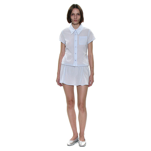PARTIMENTO 日系花邊收腰短袖 襯衫 韓國正品 顯瘦學院風襯衣 修身由