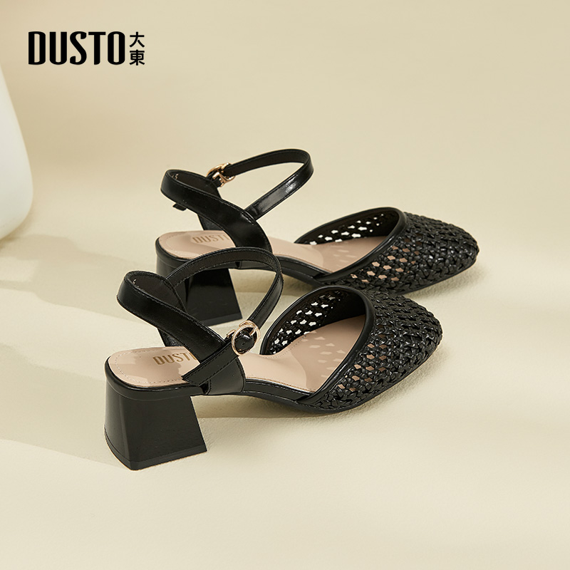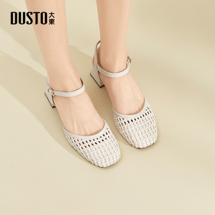 大東中空單鞋 2026夏季 新款 優雅粗跟中跟包頭一字扣編織0008Z 女鞋由