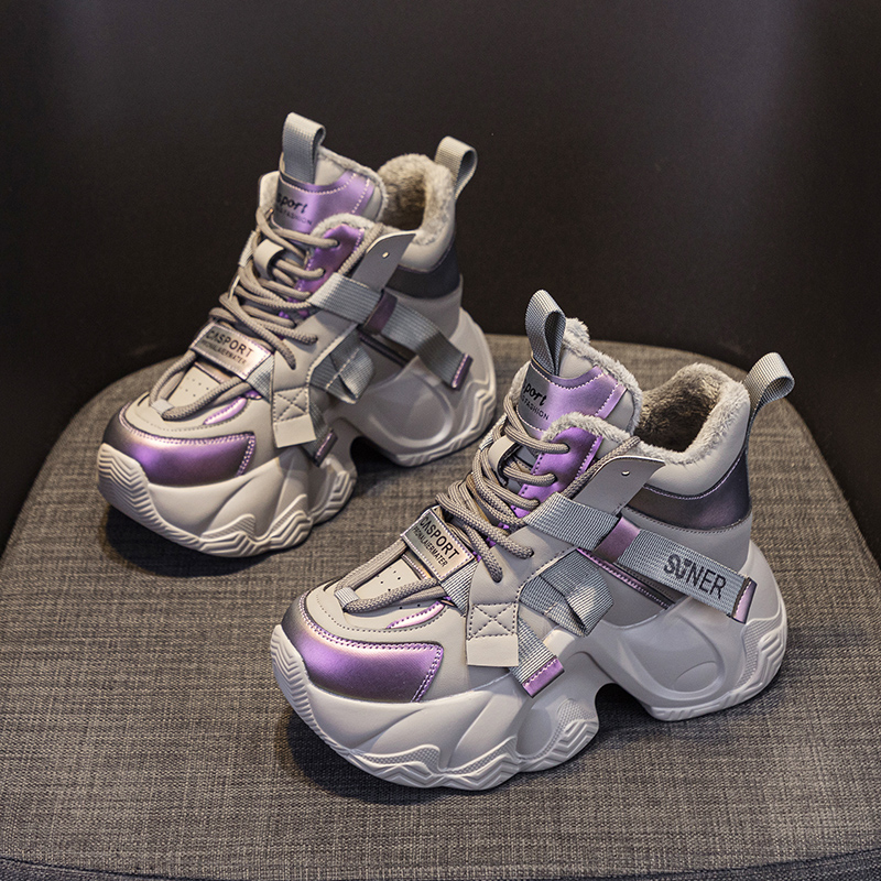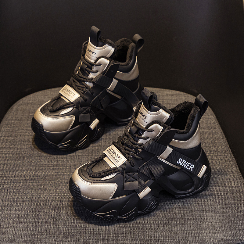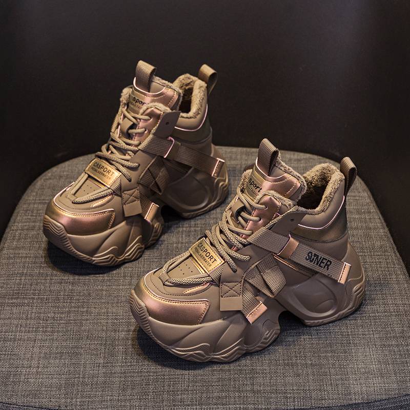 歐洲站厚底高幫老爹鞋 爆款 加絨內(nèi)增高運(yùn)動(dòng)休閑棉鞋 女2025秋冬新款由
