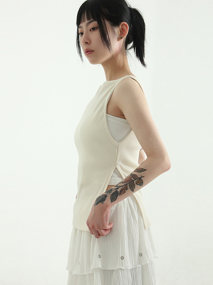 golgi 24S 設(shè)計(jì)師百搭針織背心女 sleeveless top slit 韓國(guó)代購(gòu)由