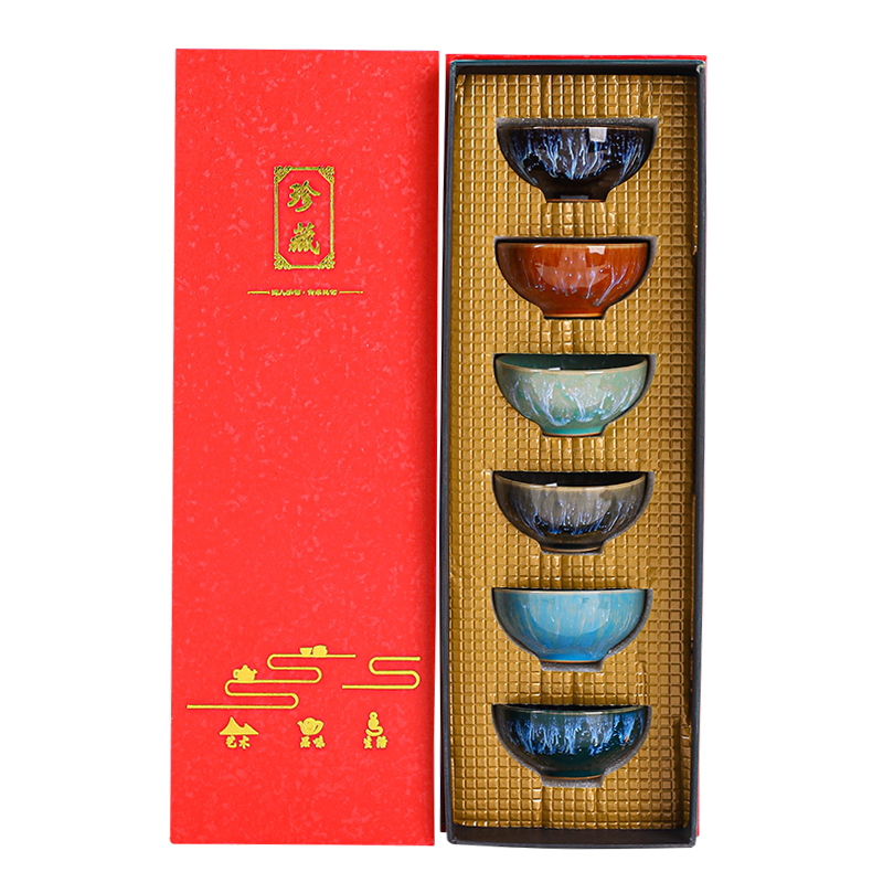 天目釉建盞窯變拉絲茶杯6只陶瓷杯功夫茶具小茶盞品名杯茶碗套裝由