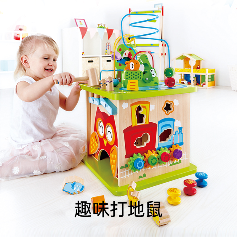 Hape森林動(dòng)物游戲盒繞珠六面體百寶箱一歲寶寶嬰兒童早教益智玩具由
