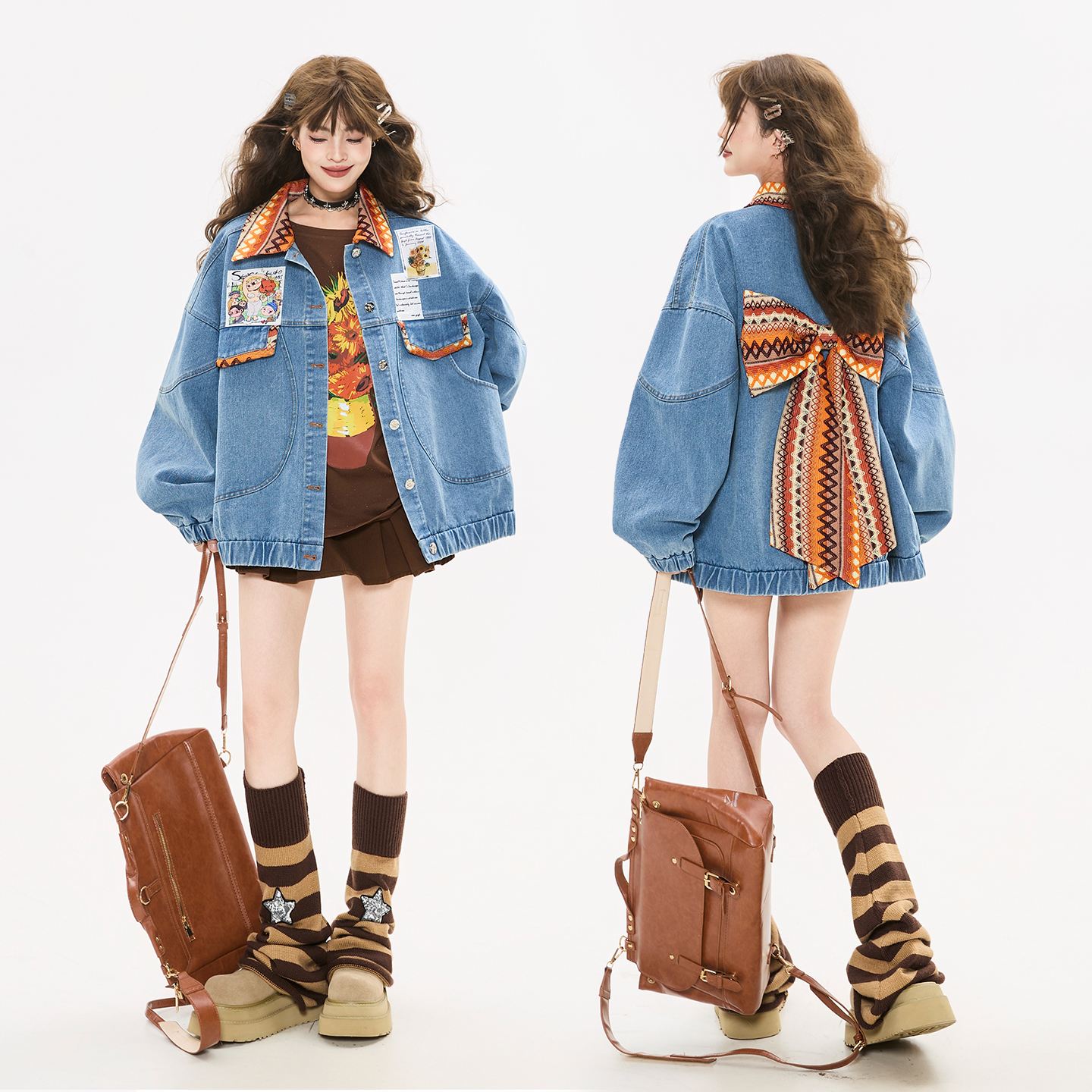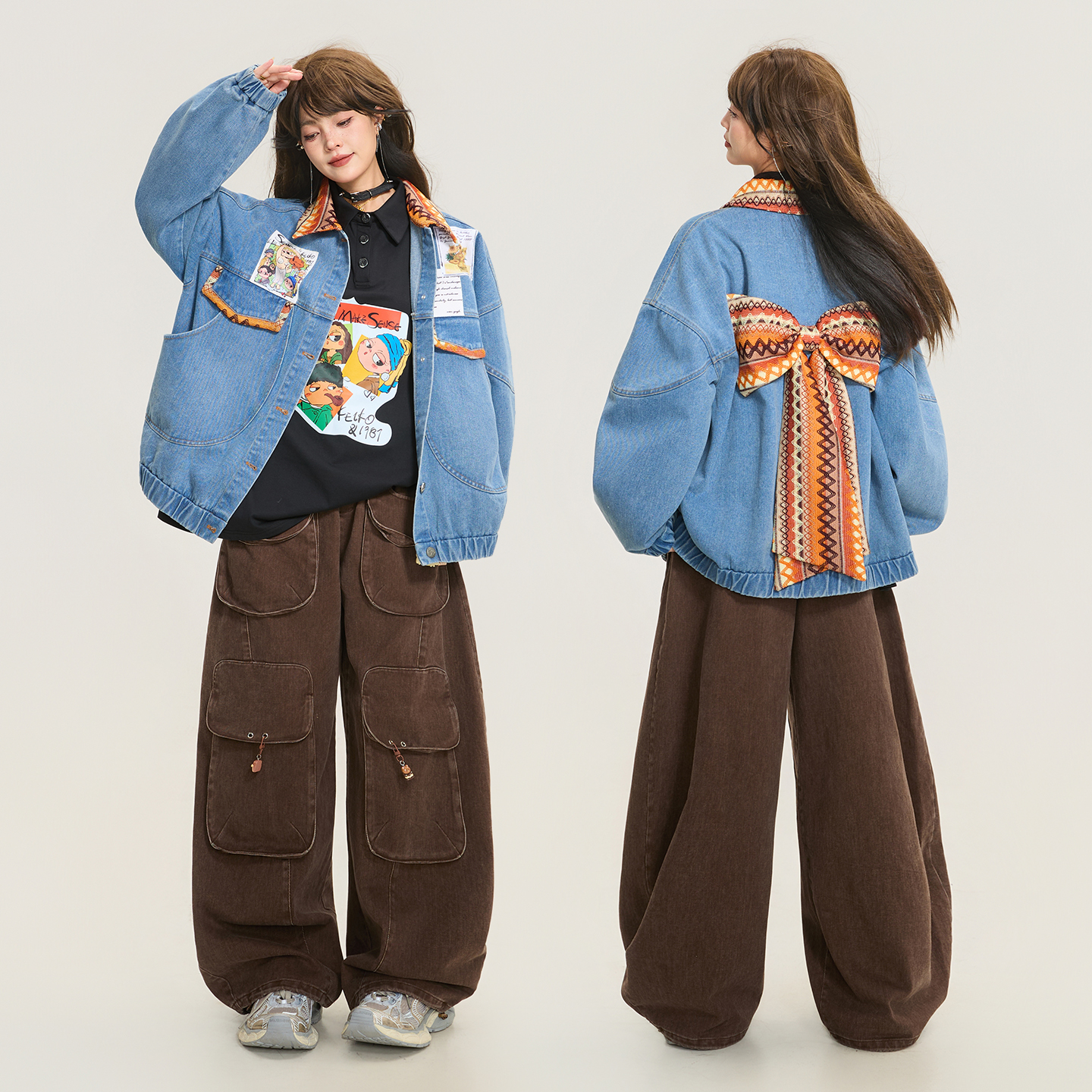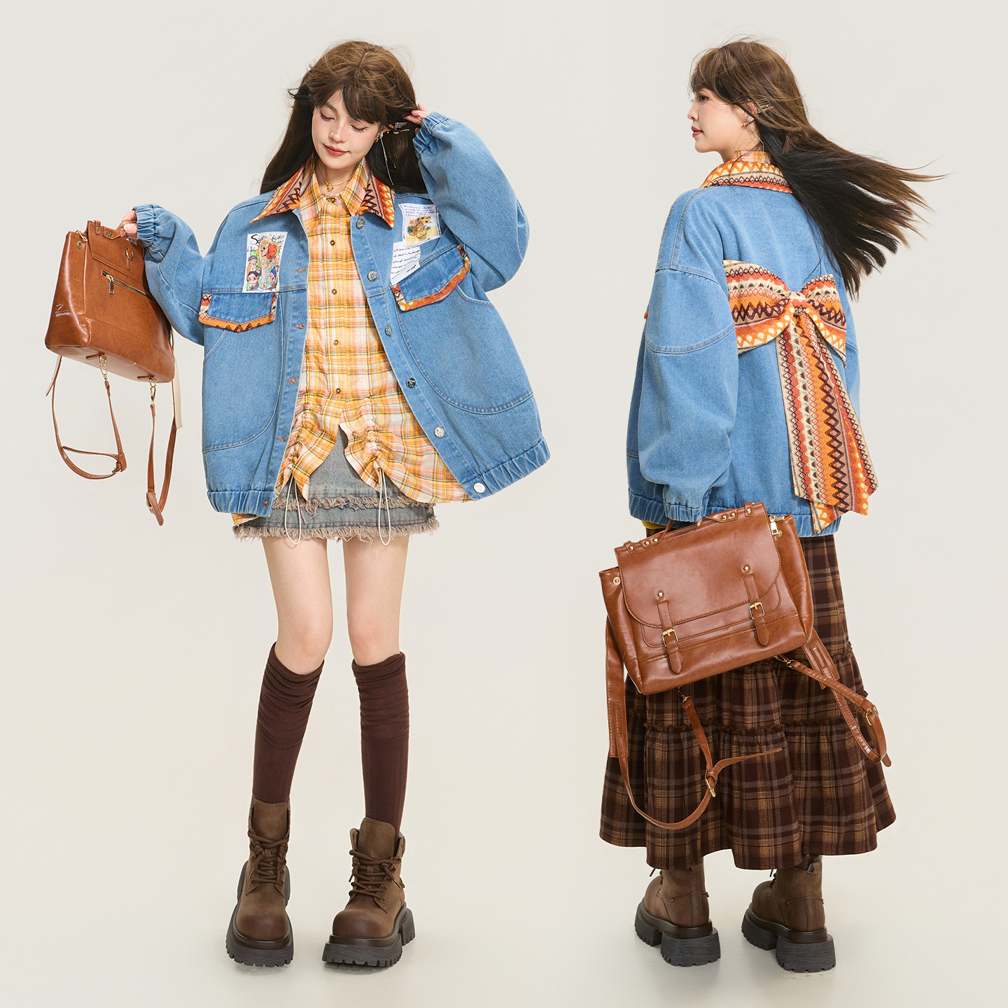 巨好看 廓形棉服夾克 少年感織花蝴蝶結(jié)飾牛仔外套秋冬新款 KEIKO由