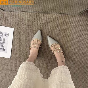 女夏外穿高級感2025新款 法式 絕美時裝 涼鞋 仙女風配裙子平底羅馬鞋