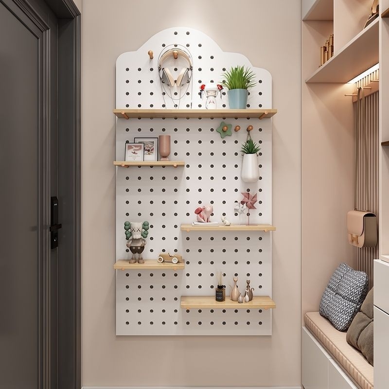 實木洞洞板上墻置物架臥室客廳玄關背景墻壁裝 飾出租屋廠 飾房間裝由