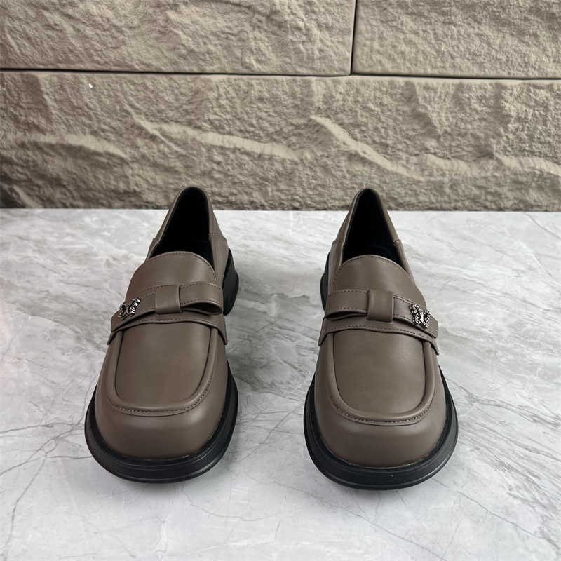 百搭圓頭單鞋 25春季 時尚 復(fù)古英倫風低跟休閑小皮鞋 真皮樂福鞋 女鞋由
