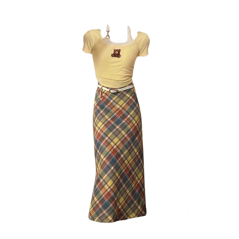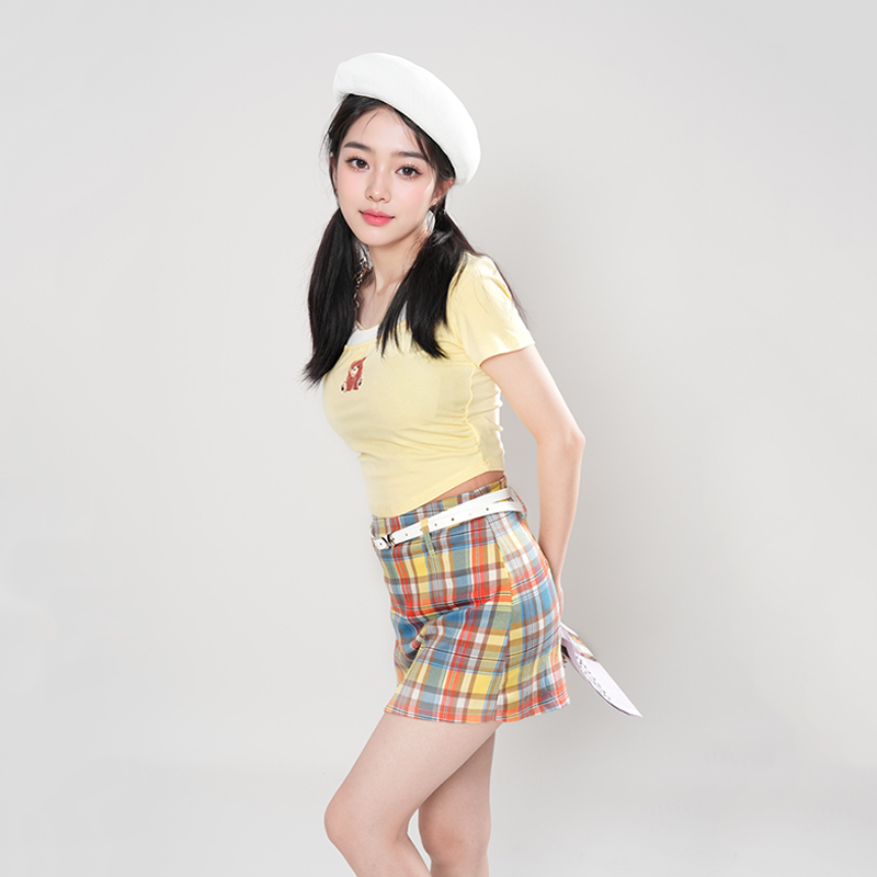 奶黃小熊 修身 印花T恤 彩虹格半裙兩件套 甜酷風(fēng)兩件套2025年新款由