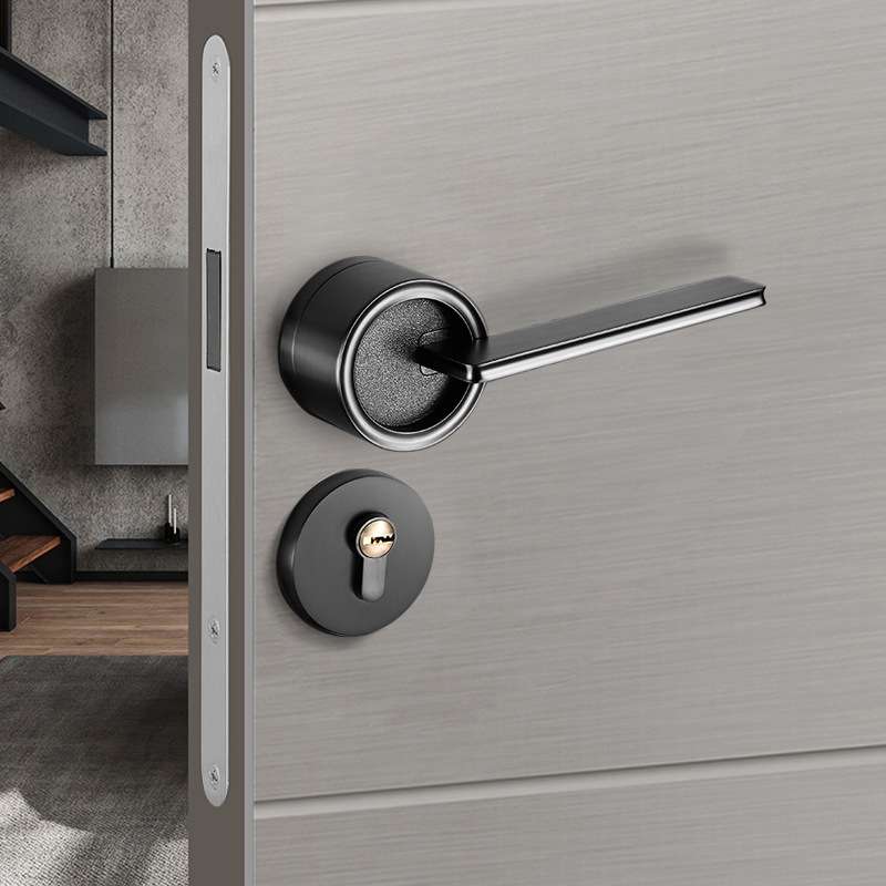 歐式 黑色室內門鎖磁吸靜音臥室房間木門鎖家用通用型鎖具把手套裝由